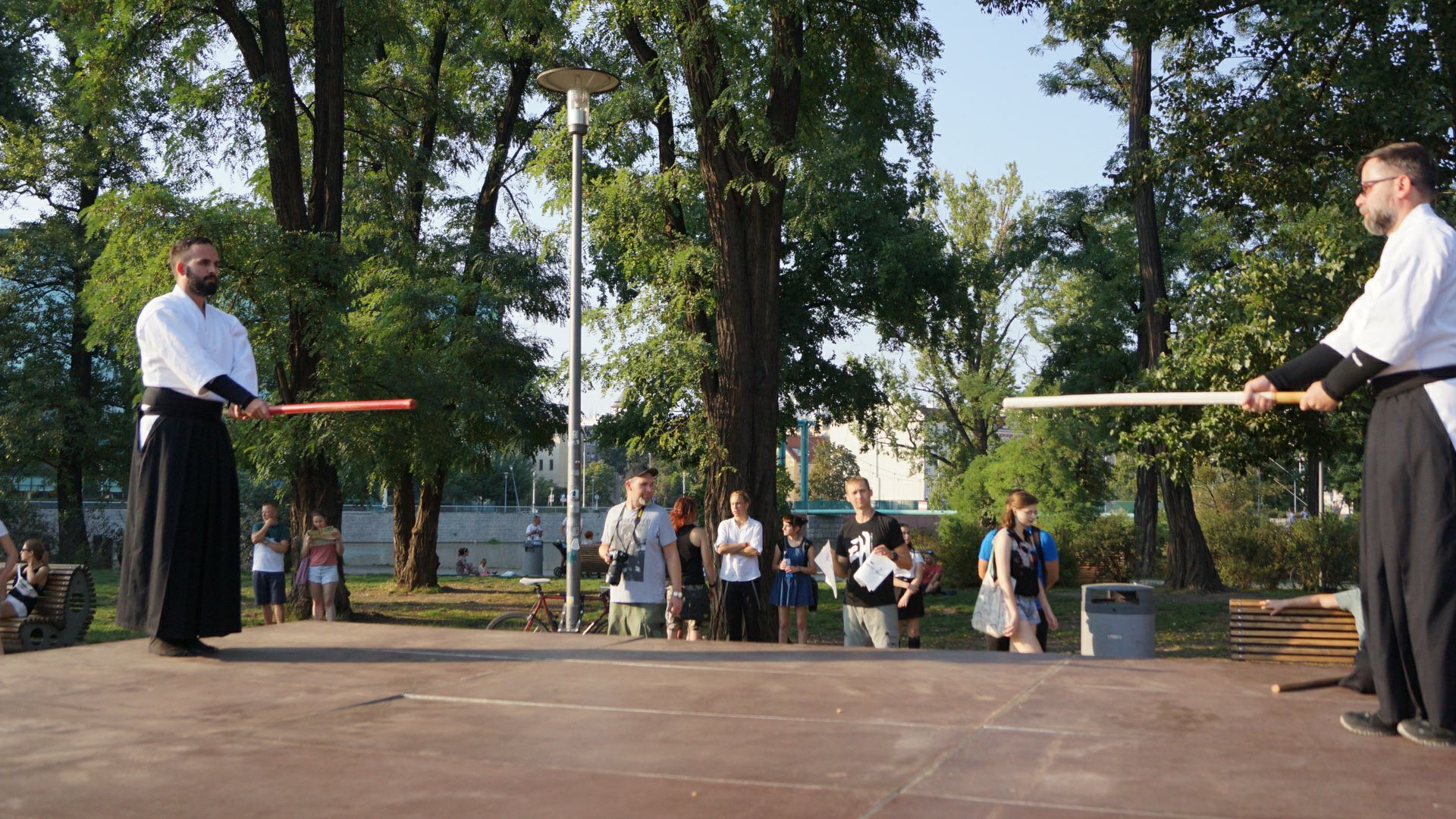 Następnie, w czasie pokazu zaprezentowaliśmy wybrane kata oraz techniki naszej szkoły  oraz przybliżyliśmy publiczności jej historię.